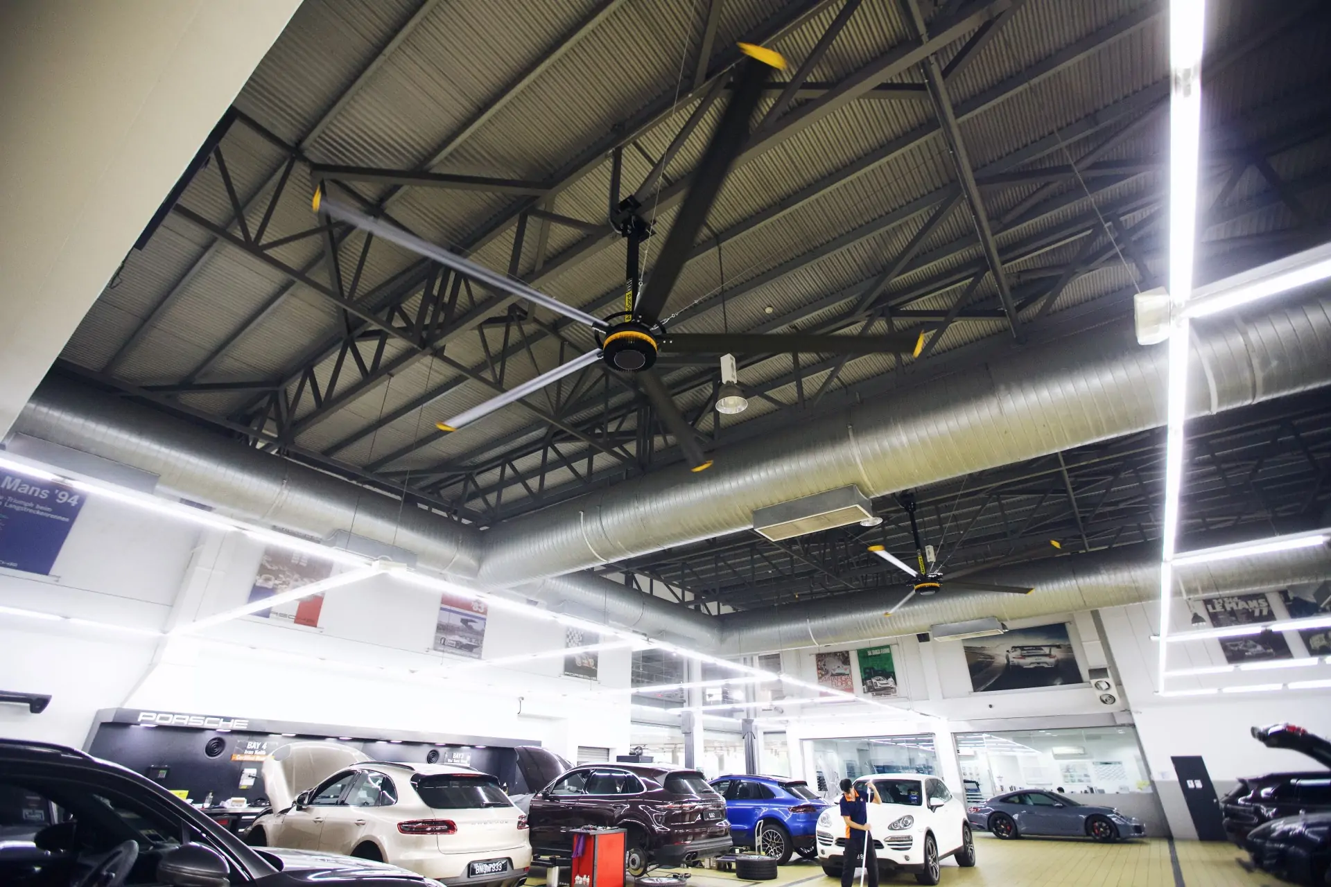 AireGard HVLS Fans were chosen for the Porsche Centre in Sungai Besi, located within the service centre to provide a comfortable working environment for the staff.