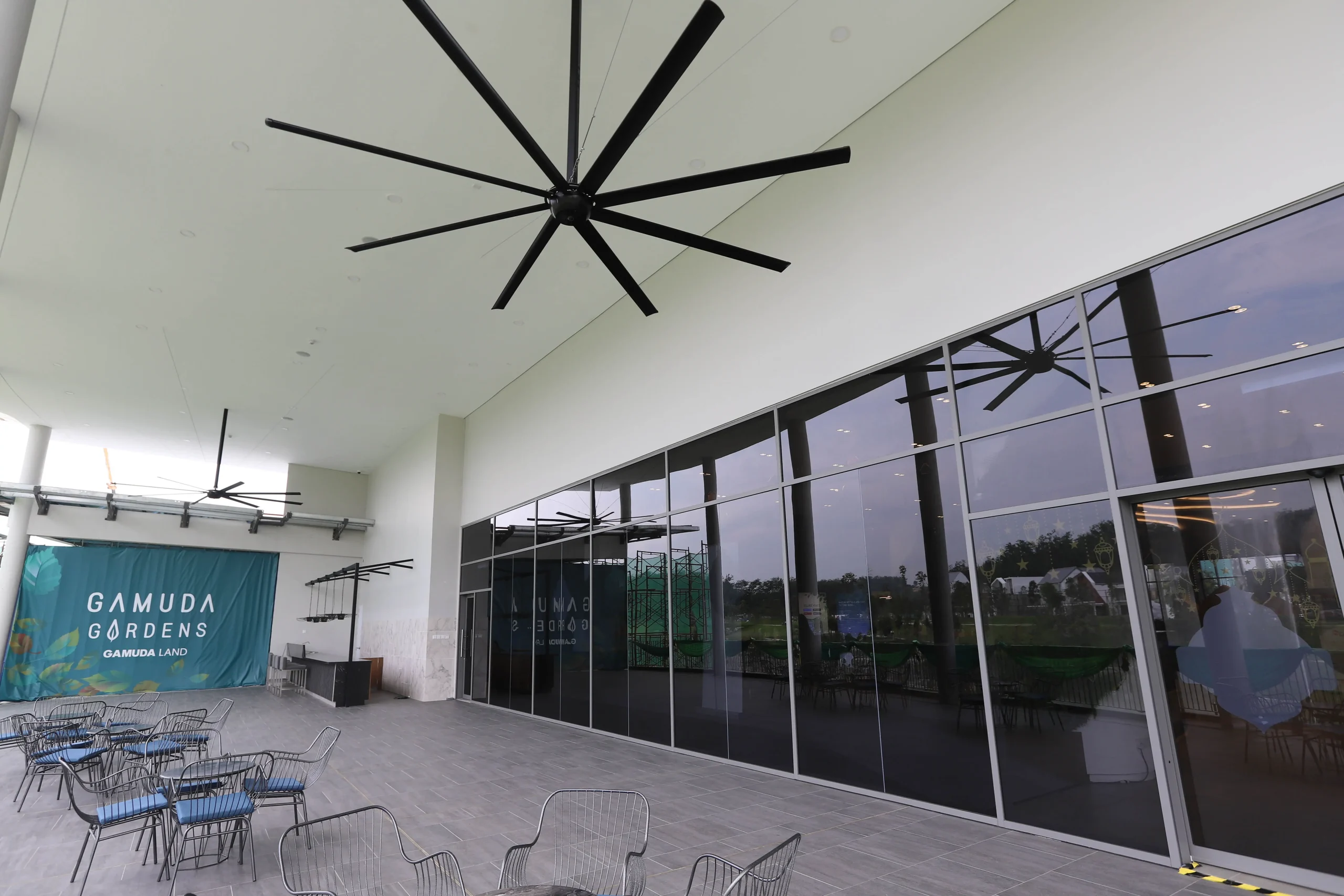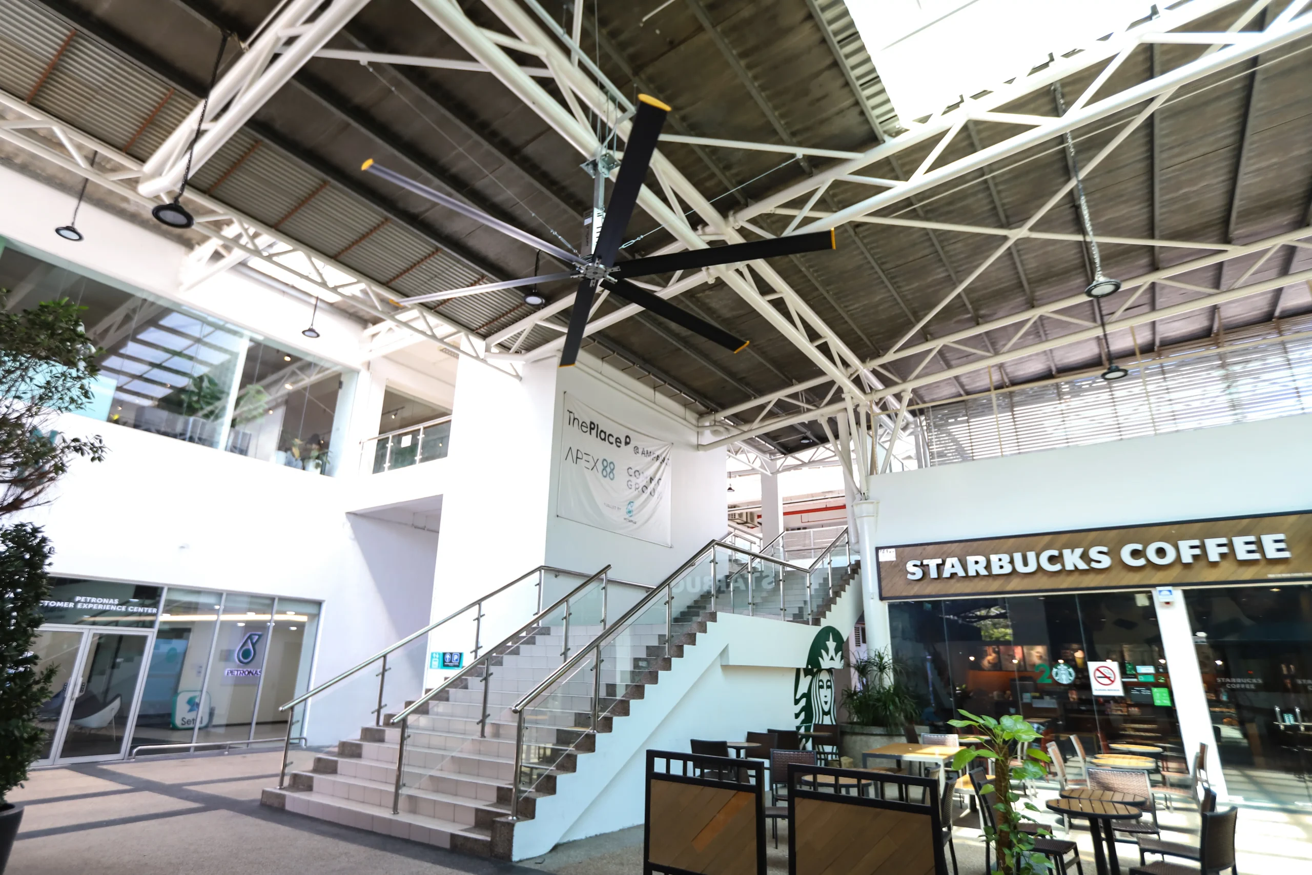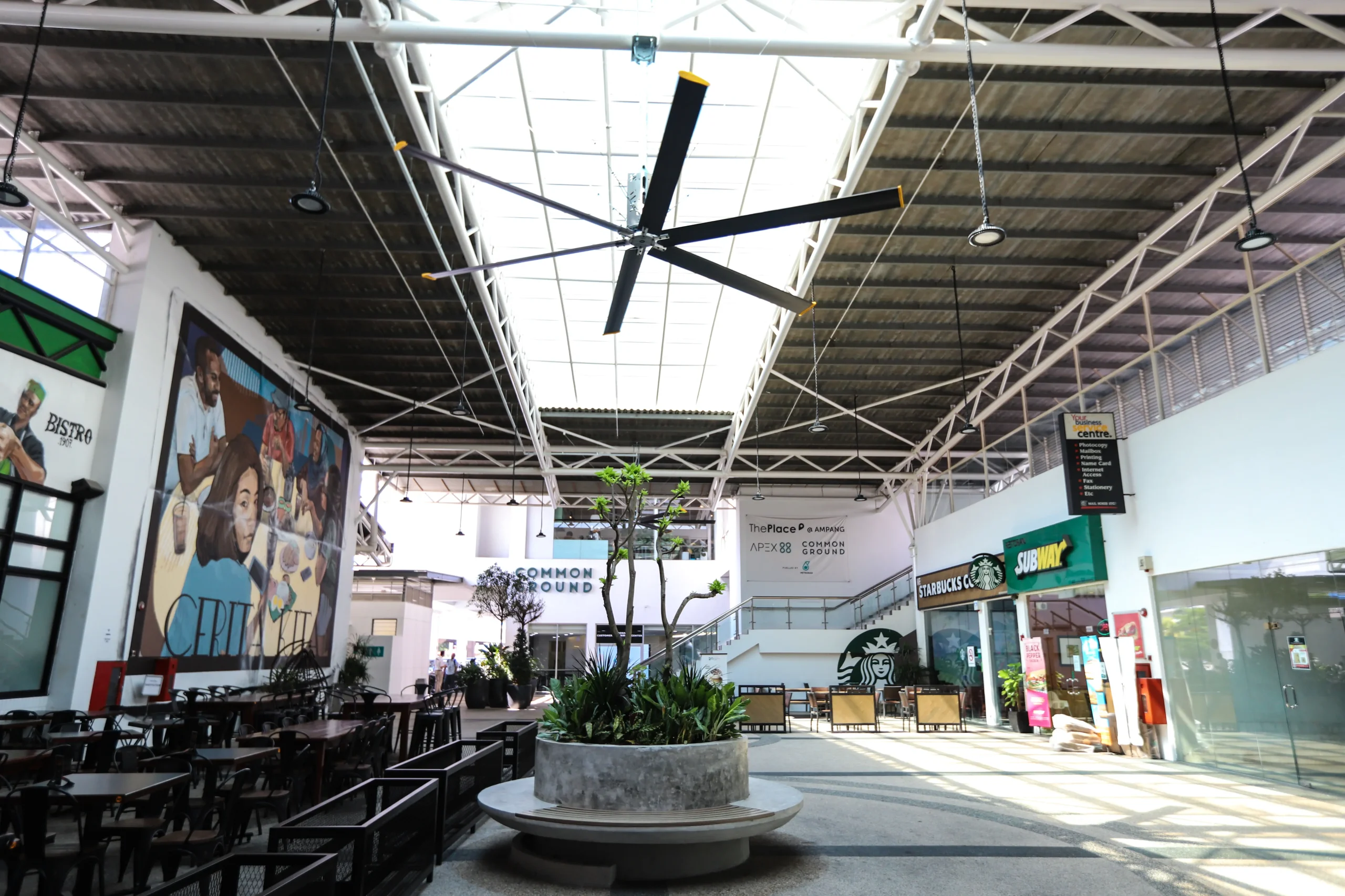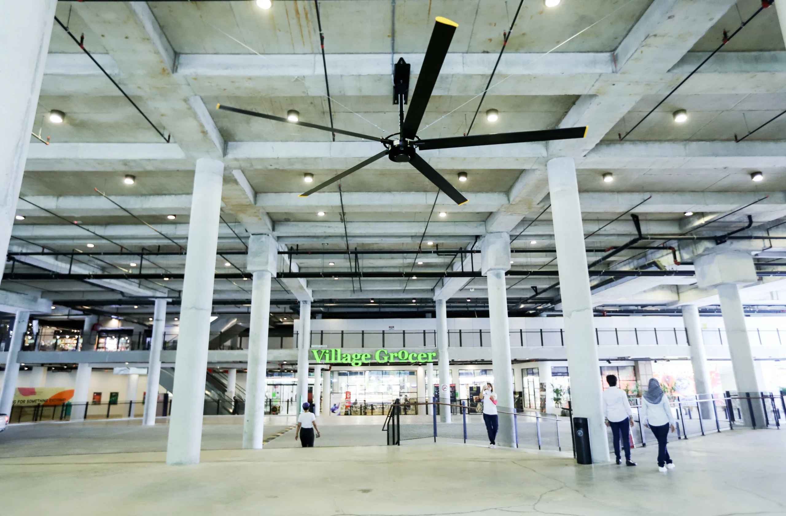 With a modern take of residential and commercial properties, a pair of PSX AireGard HVLS fans has helped improved the aesthetic area and provide comfortable airflow at the open space to allow activities to be enjoyable.