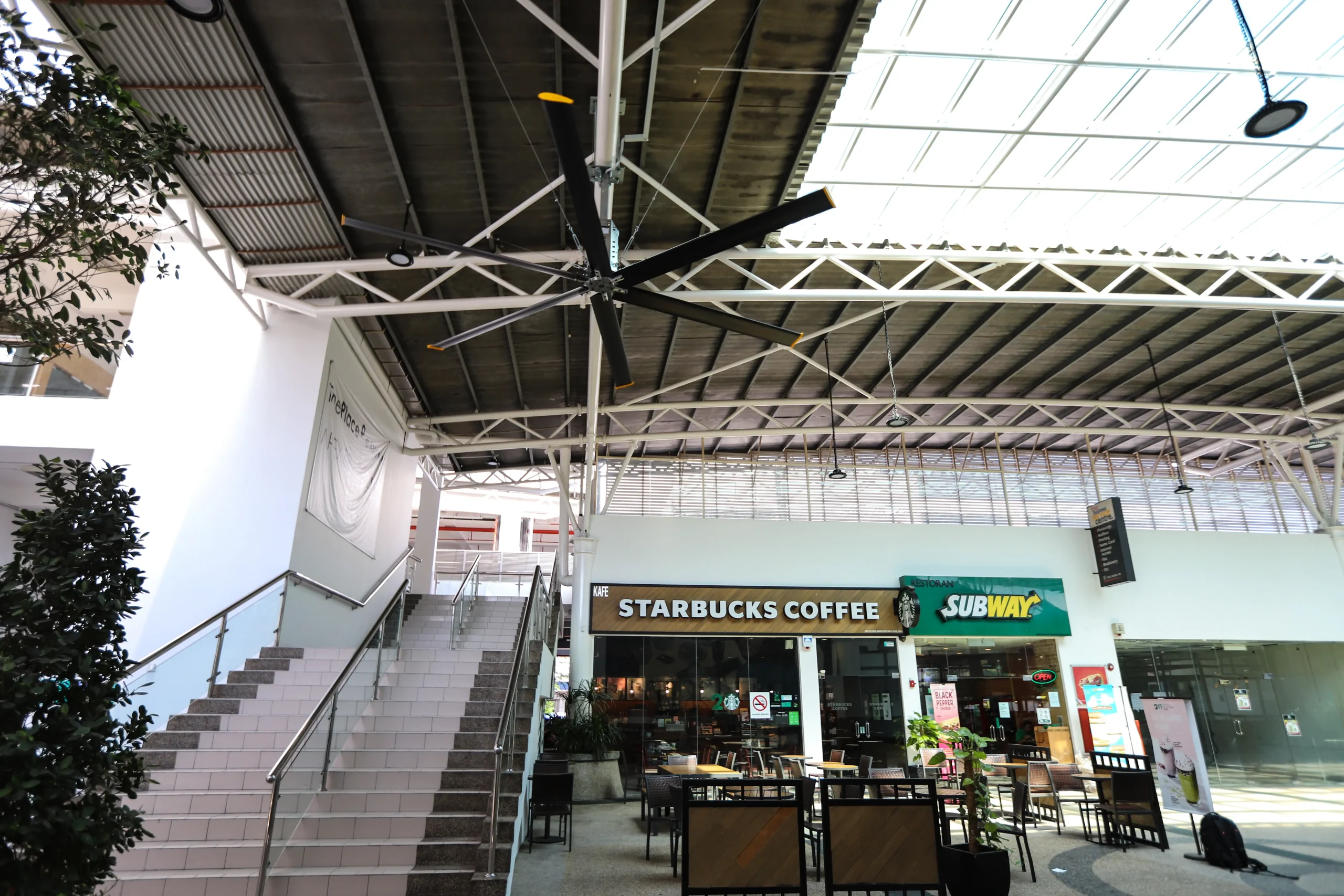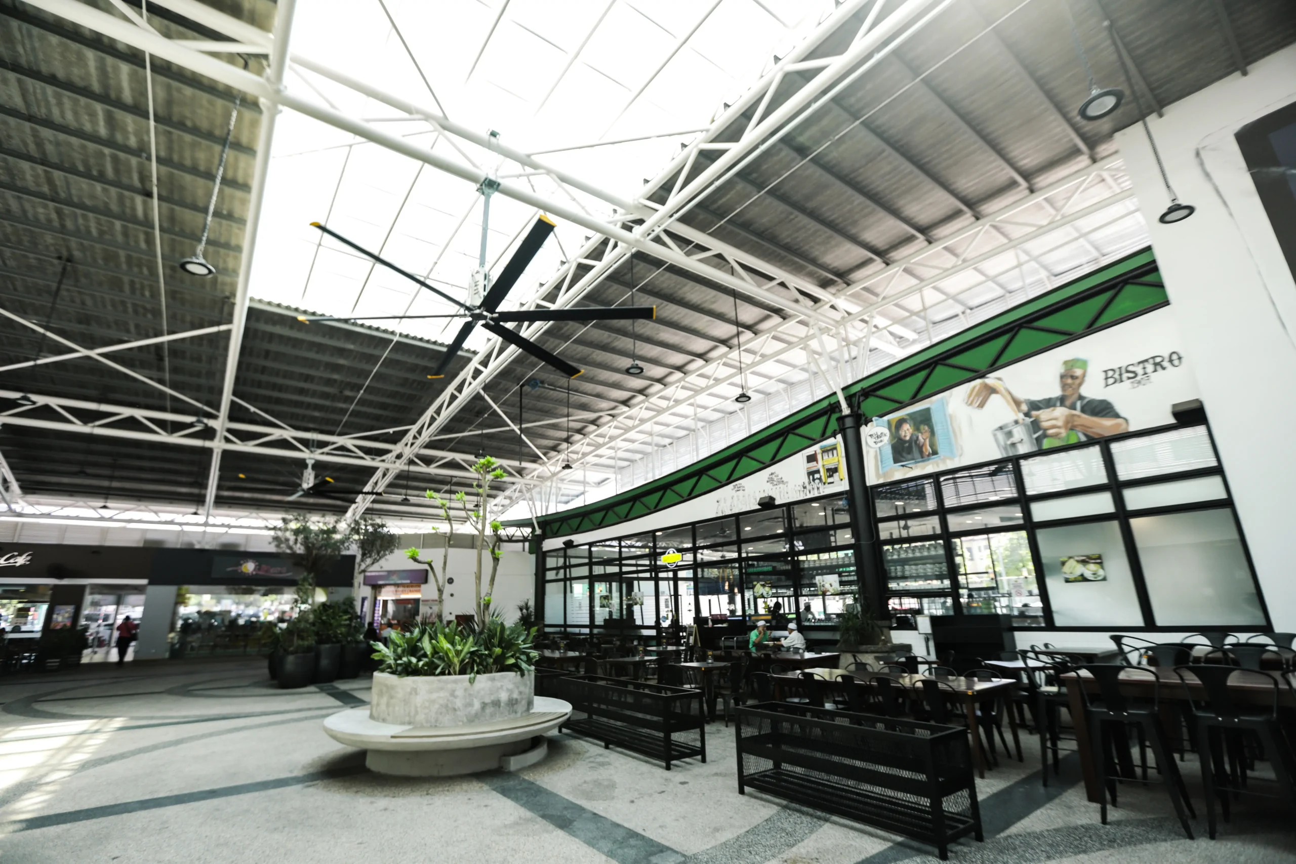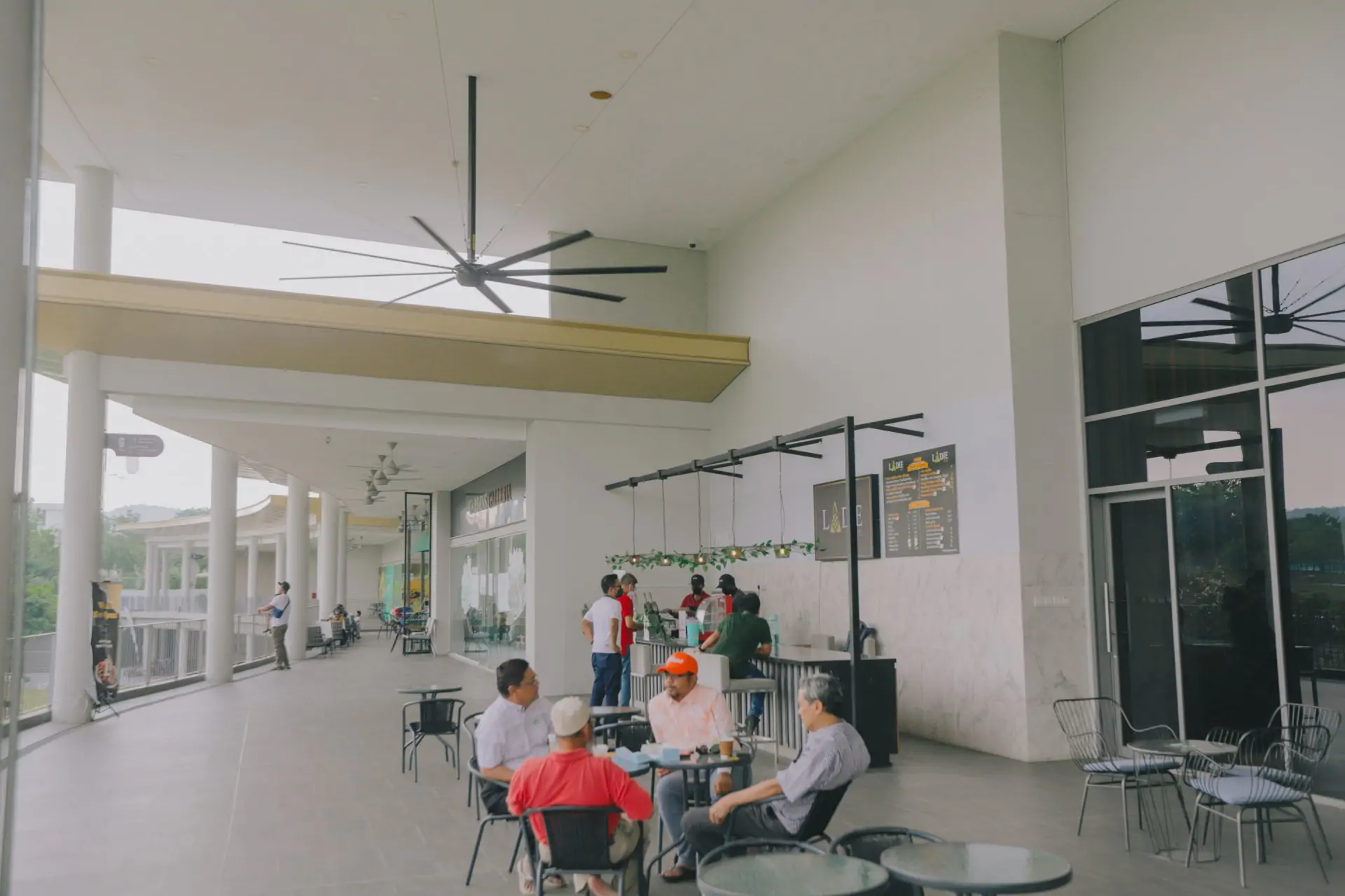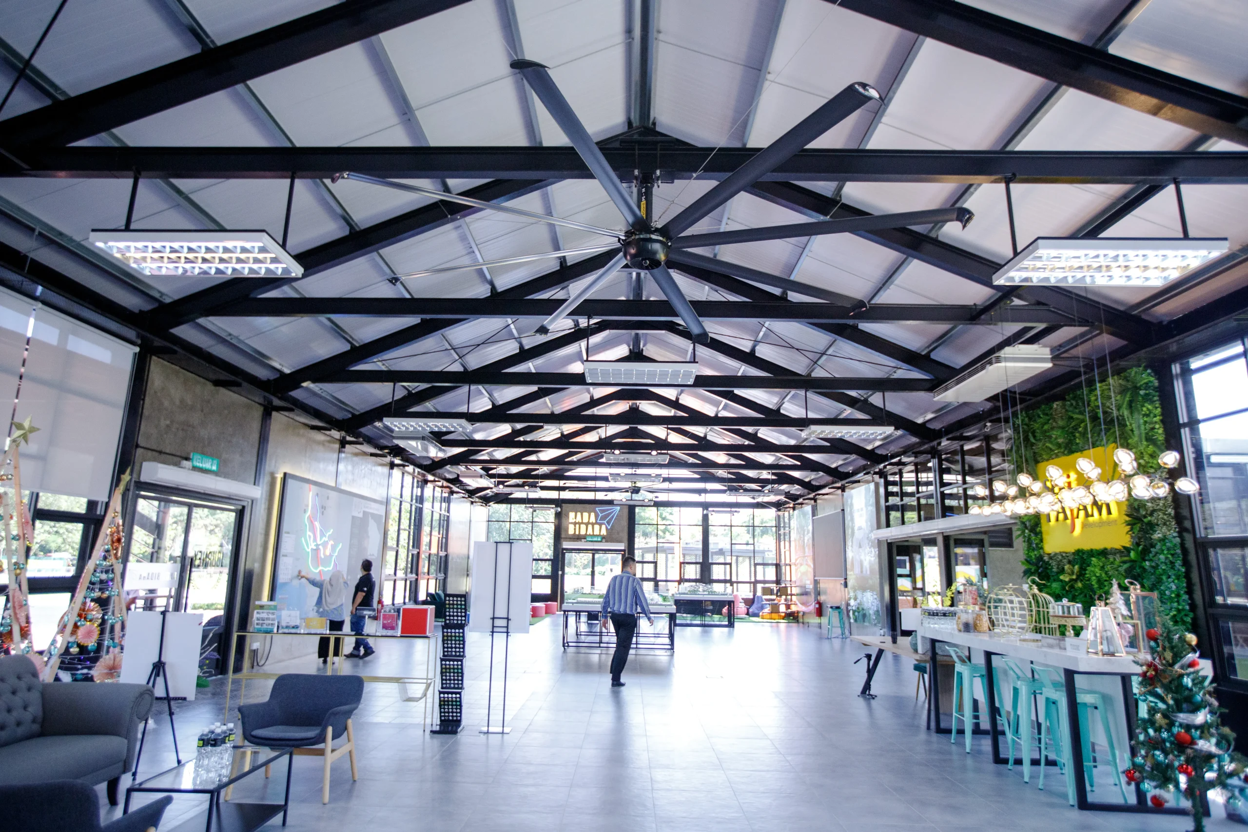 With a modern take of residential and commercial properties, a pair of PSX AireGard HVLS fans has helped improved the aesthetic area and provide comfortable airflow at the open space to allow activities to be enjoyable.