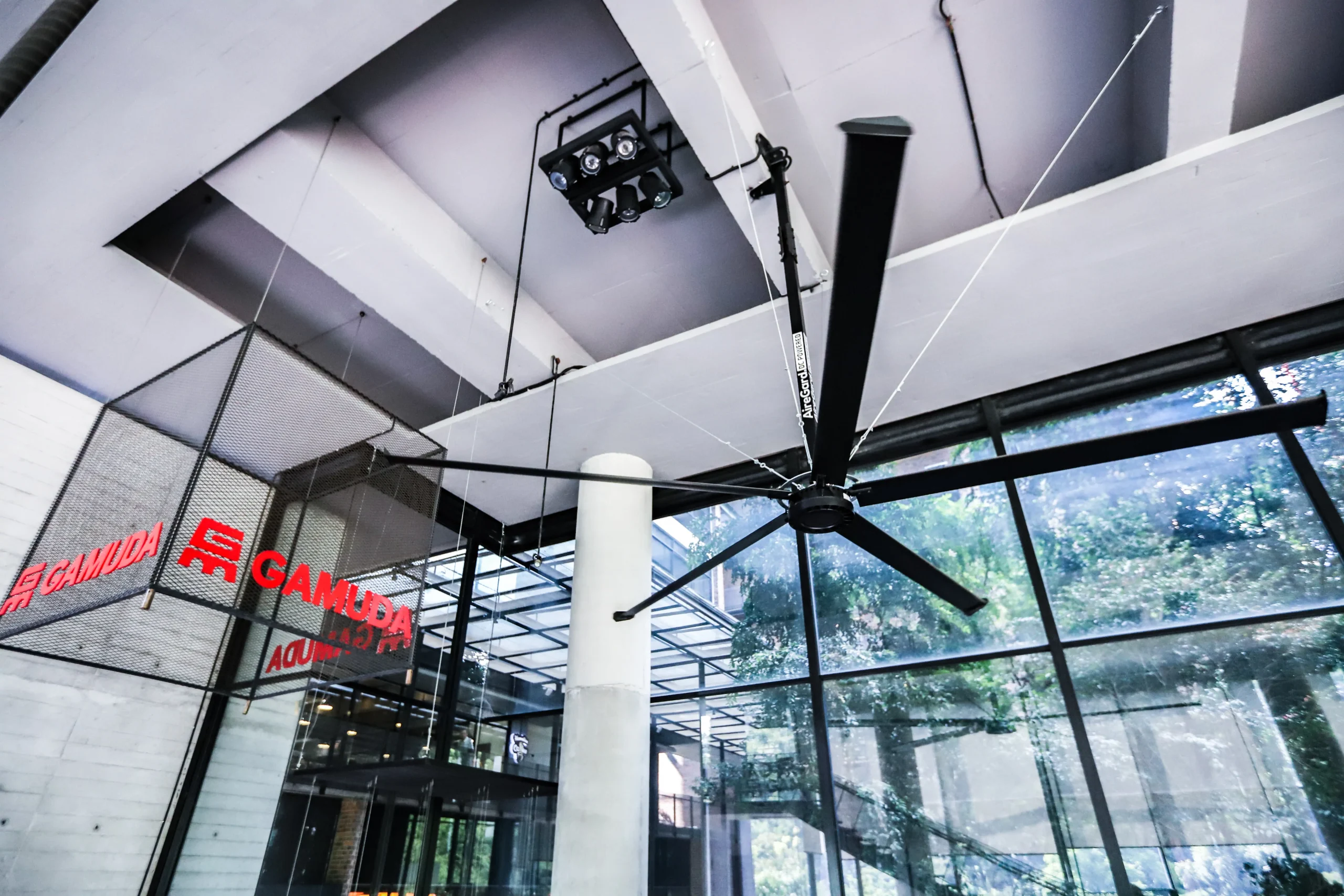 A major tech hub in the middle of the city. They chose our models PSX Series and DCB Series AireGard HVLS fans with the new performance technology, PMSM motor.