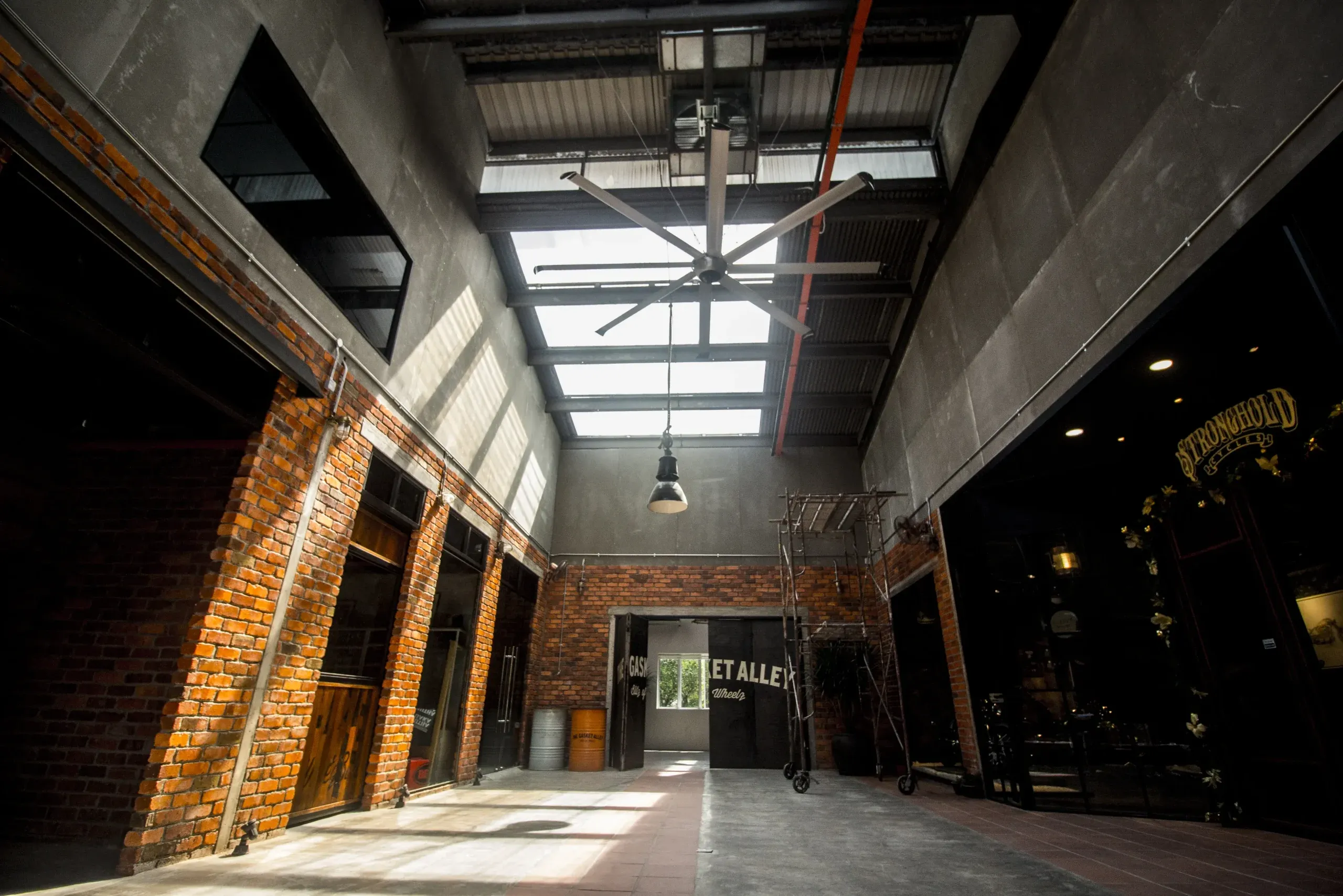 The Gasket Alley is a curated artistic space. They chose AireGard HVLS fans for their space as they are design pleasing with good performance.