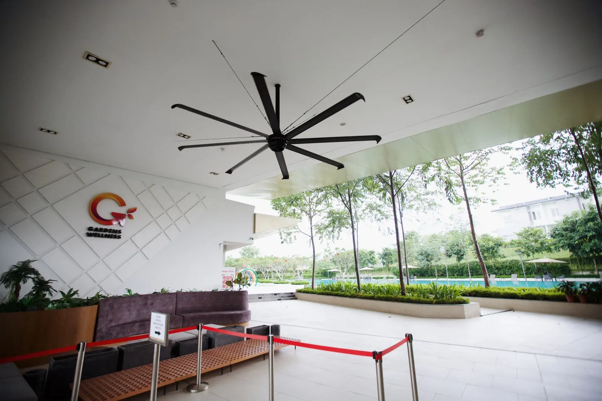 Gardens Wellness is set in the 810-acre development that ingeniously fuses lifestyle and nature in one township, that is the Gamuda Gardens. AireGard PS HVLS Fans were chosen to provide soothing airflow that compliments the locale.