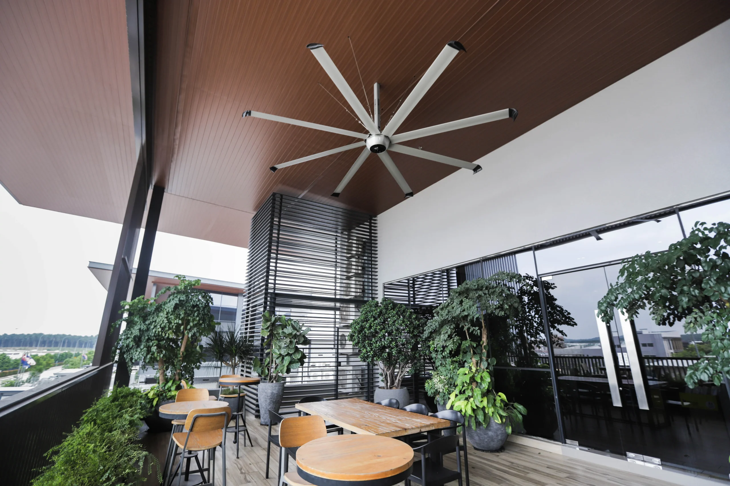 Enjoy the breeze of AireGard HVLS fans while relaxing and having a drink looking at the Petronas Twin Towers.