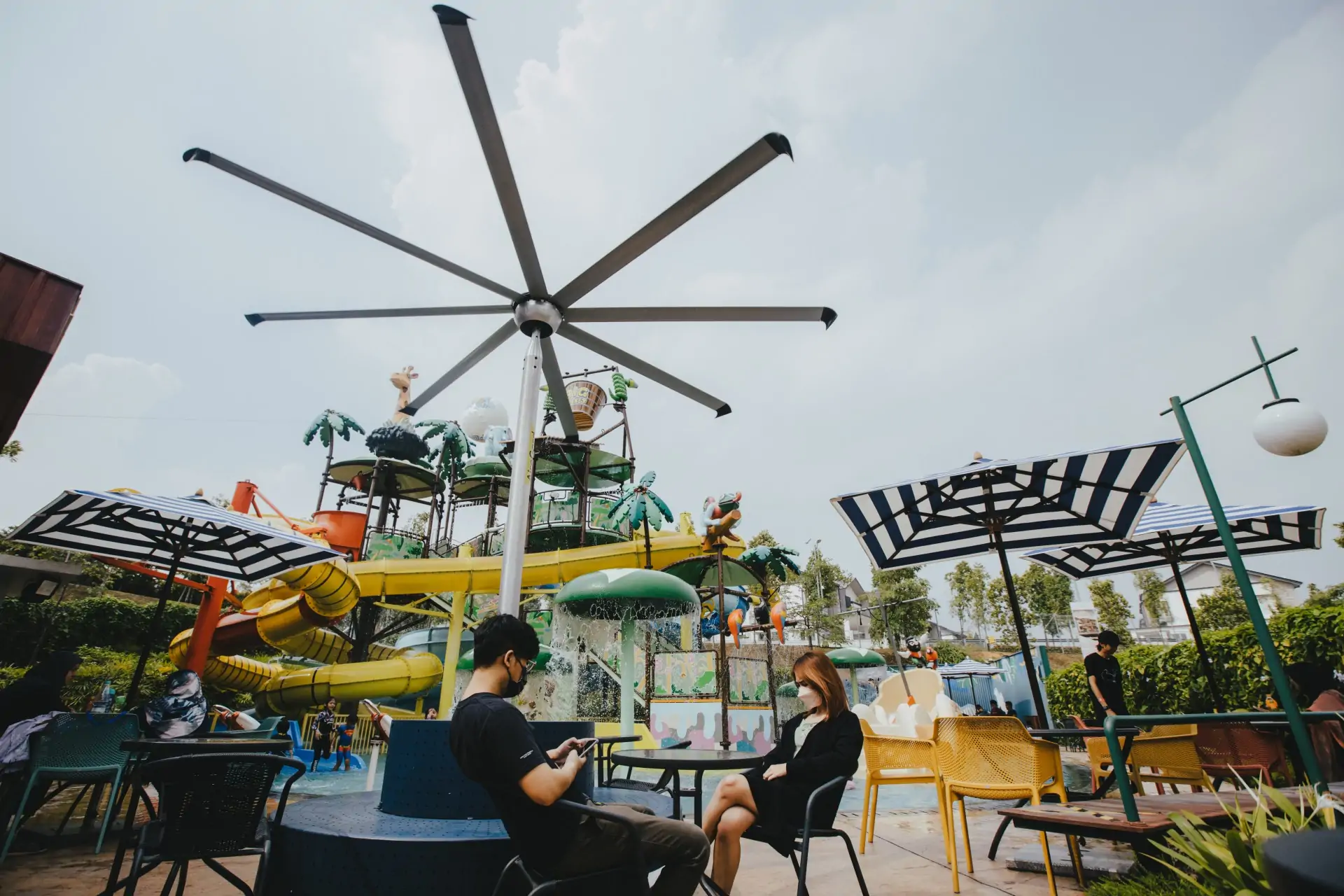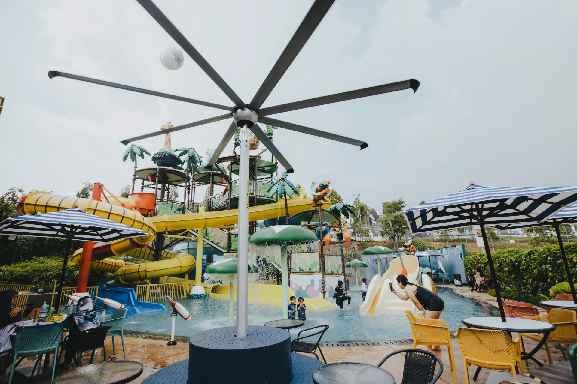 Big Bucket Splash is strategically located at the Gamuda Gardens rainforest; a themed waterplay attraction that covers 1,000 sq ft of land features towering slides, shallow pool, rain bucket, and many more. Enjoy cooling airflow with the AireGard PSP HVLS Fans set around the resting areas while the kids play.