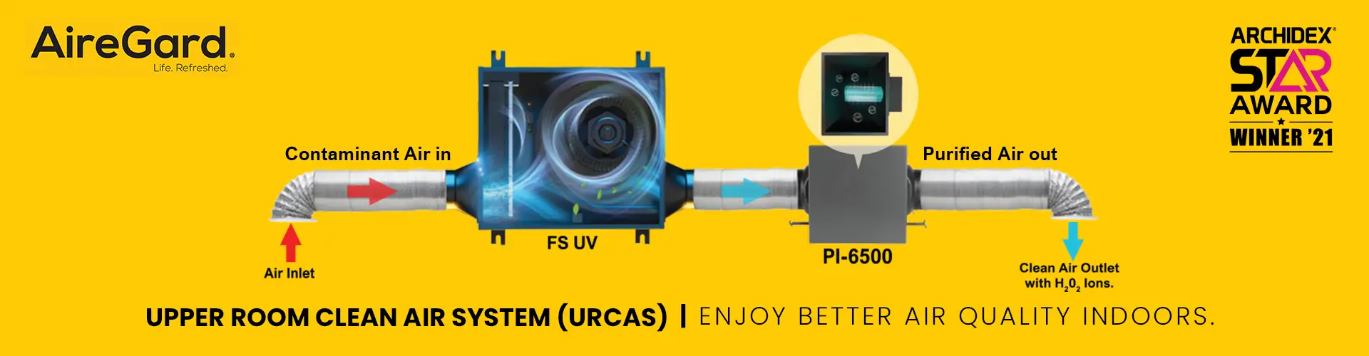 The AireGard FS is a Fresh Air Ventilator that introduces filtered fresh air into enclosed spaces, which effectively dilutes the concentration of COVID-19 and other airborne germ particles in the air with increased air change in a targeted area.