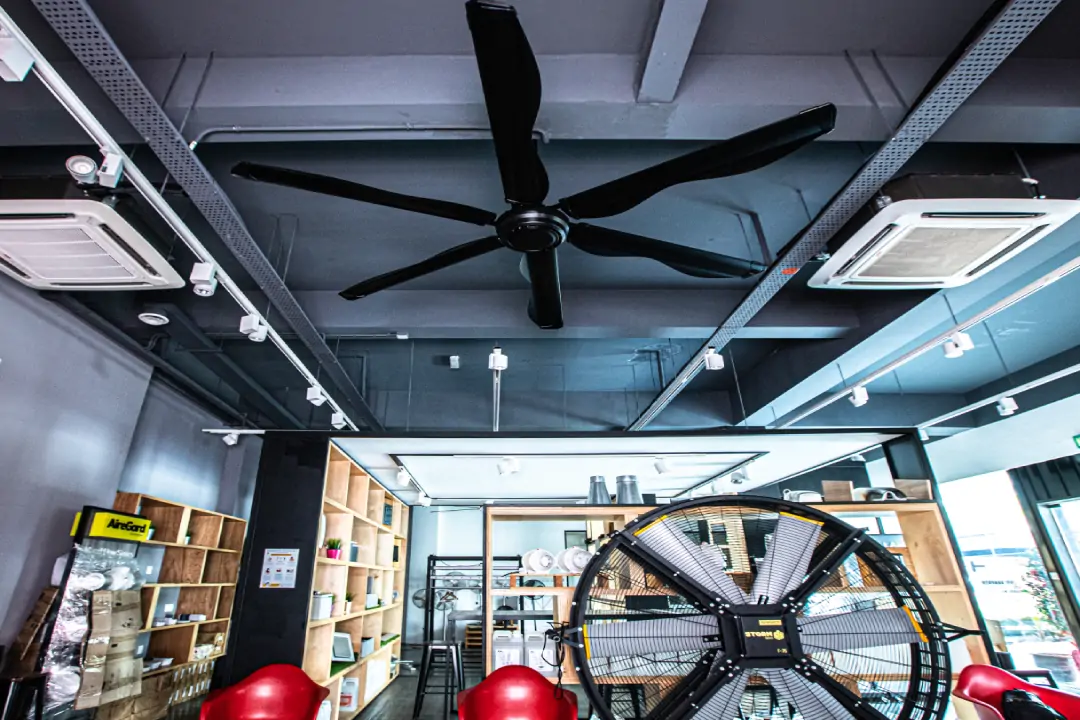 Introducing AireGard smallest HVLS Fans ranging from 6.5 ft to accommodate chic and smaller spaces of needs like Restaurants, Exhibitions halls. Gym, Playgrounds, Convenient Stores and many more, completing our HVLS Fans offering to ALL types of spaces. One PSC series can easily outperform 12-normal fans while running on the newly improved AireGard NeoDrive PMSM Motor, generating great energy saving. This beauty comes in 3-colours to match difference style of spaces.