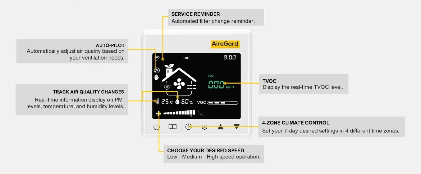 To prevent the spread of airborne diseases and issues like Sick Building Syndrome (SBS), proper air ventilation is a must. The AireGard ERV is a low-energy whole-space heat recovery unit with a high-efficiency heat exchanger that provides a constant supply of fresh tempered air into living spaces while keeping your electricity bills low.