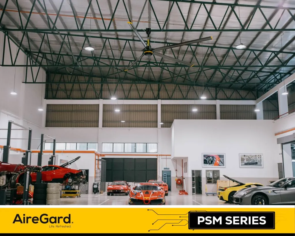 The AireGard HVLS Industrial Fan is more than just a cooling tool. It is an energy-saving solution that improves comfort, boosts efficiency, and creates a better working environment. Equip your automotive facility with AireGard HVLS fans and experience a smarter way to keep your space cool and productive.
